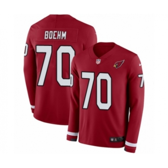 >Men's Nike Arizona Cardinals #70 Evan Boehm Limited Red Therma Long Sleeve NFL Jersey