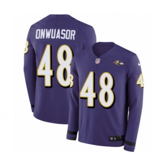 Men's Nike Baltimore Ravens #48 Patrick Onwuasor Limited Purple Therma Long Sleeve NFL Jersey