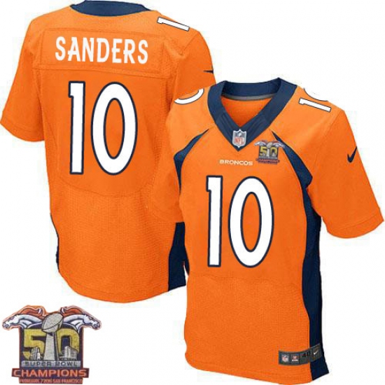 Men's Nike Denver Broncos #10 Emmanuel Sanders Elite Orange Team Color Super Bowl 50 Champions NFL Jersey