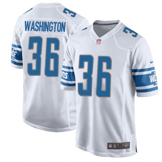 Men's Nike Detroit Lions #36 Dwayne Washington Game White NFL Jersey