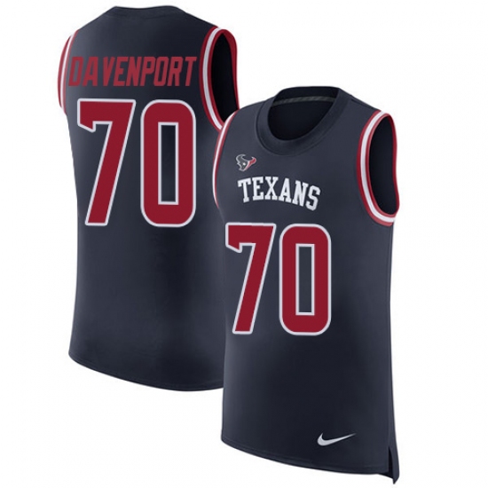 Home>NFL>Houston Texans>Julien Davenport>Men's Nike Houston Texans #70 Julien Davenport Limited Navy Blue Rush Player Name & Number Tank Top NFL Jersey