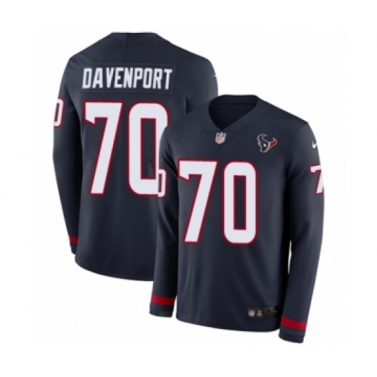 Men's Nike Houston Texans #70 Julien Davenport Limited Navy Blue Therma Long Sleeve NFL Jersey