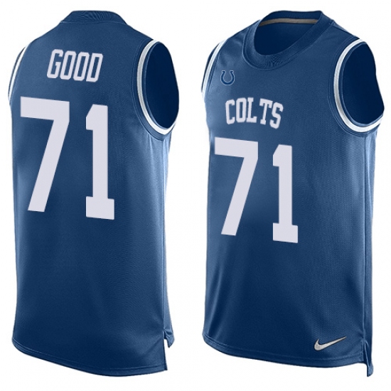 Home>NFL>Indianapolis Colts>Denzelle Good>Men's Nike Indianapolis Colts #71 Denzelle Good Limited Royal Blue Player Name & Number Tank Top NFL Jersey