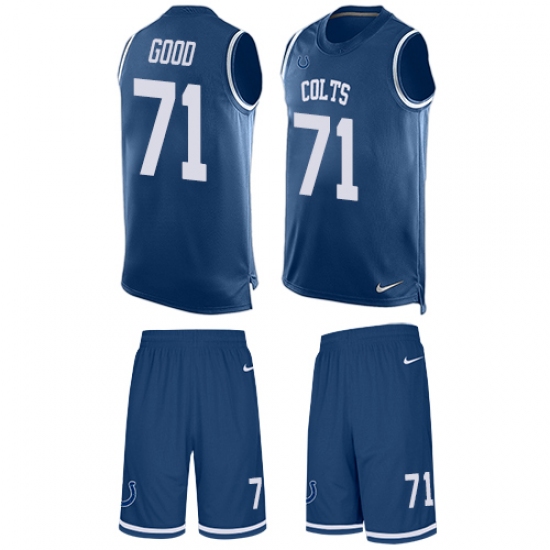 Home>NFL>Indianapolis Colts>Denzelle Good>Men's Nike Indianapolis Colts #71 Denzelle Good Limited Royal Blue Tank Top Suit NFL Jersey