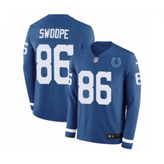 >Men's Nike Indianapolis Colts #86 Erik Swoope Limited Blue Therma Long Sleeve NFL Jersey