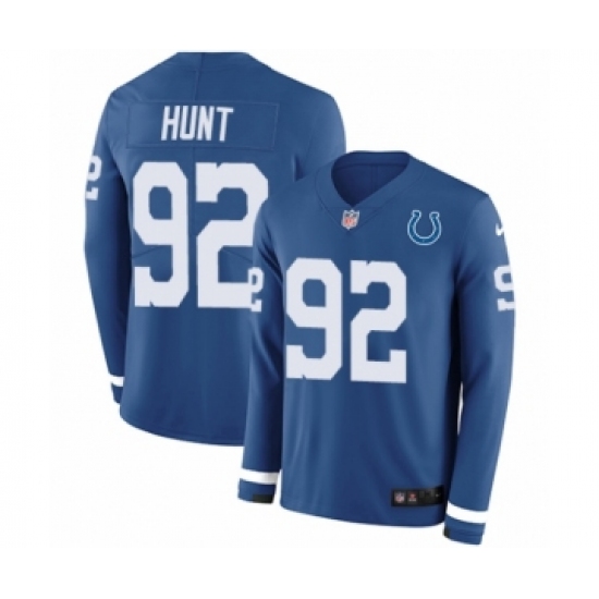Men's Nike Indianapolis Colts #92 Margus Hunt Limited Blue Therma Long Sleeve NFL Jersey