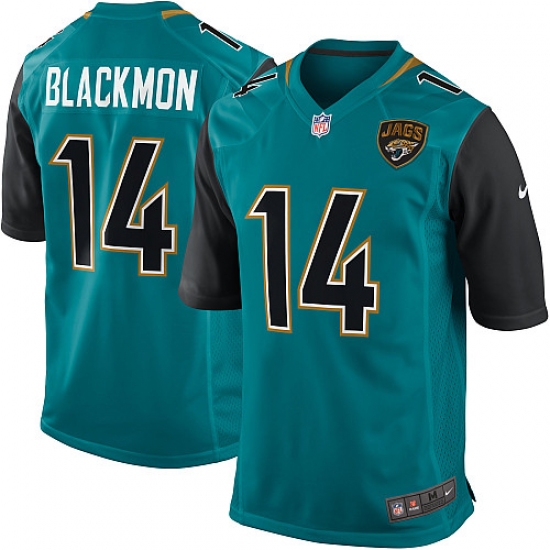 Home>NFL>Jacksonville Jaguars>Justin Blackmon>Men's Nike Jacksonville Jaguars #14 Justin Blackmon Game Teal Green Team Color NFL Jersey