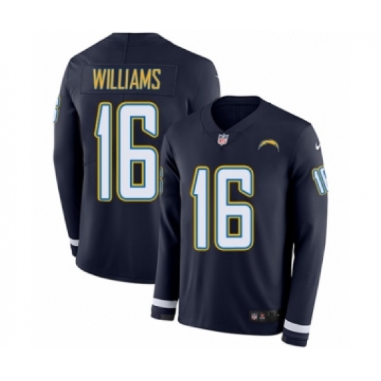 >Men's Nike Los Angeles Chargers #16 Tyrell Williams Limited Navy Blue Therma Long Sleeve NFL Jersey