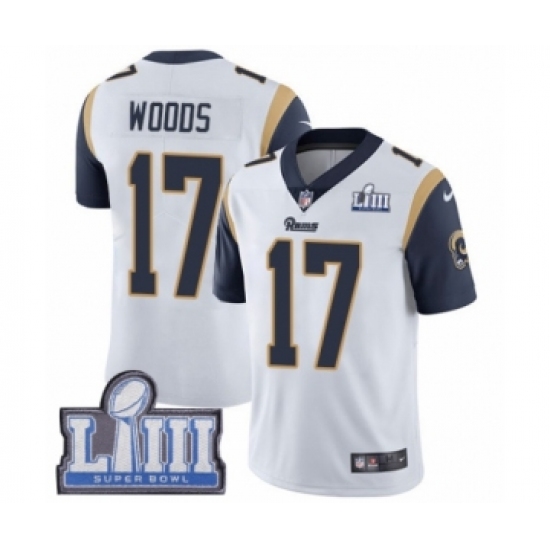>Men's Nike Los Angeles Rams #17 Robert Woods White Vapor Untouchable Limited Player Super Bowl LIII Bound NFL Jersey