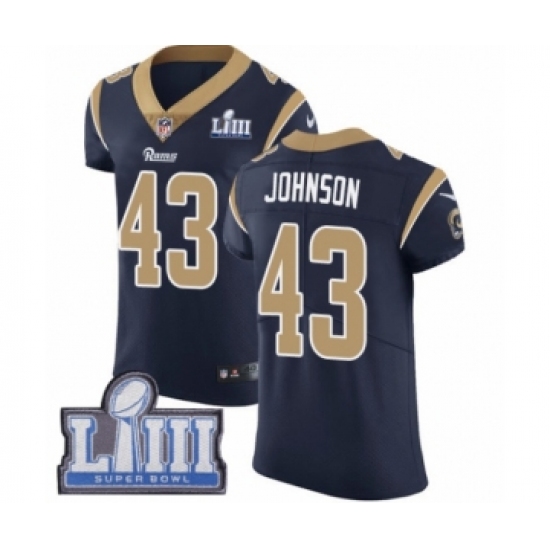 Men's Nike Los Angeles Rams #43 John Johnson Navy Blue Team Color Vapor Untouchable Elite Player Super Bowl LIII Bound NFL Jersey