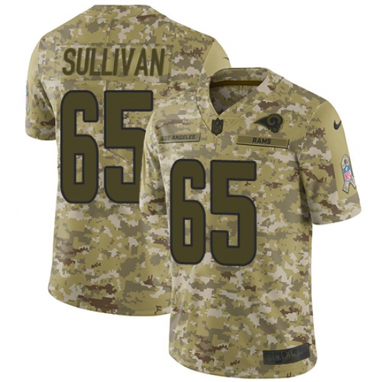 >Men's Nike Los Angeles Rams #65 John Sullivan Limited Camo 2018 Salute to Service NFL Jersey