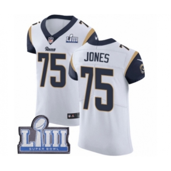 Men's Nike Los Angeles Rams #75 Deacon Jones White Vapor Untouchable Elite Player Super Bowl LIII Bound NFL Jersey