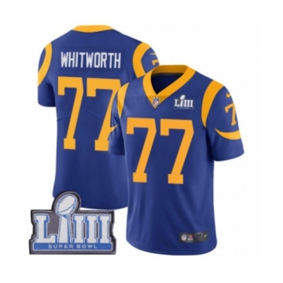 Men's Nike Los Angeles Rams #77 Andrew Whitworth Royal Blue Alternate Vapor Untouchable Limited Player Super Bowl LIII Bound NFL Jersey