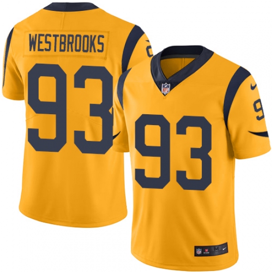 Home>NFL>Los Angeles Rams>Ethan Westbrooks>Men's Nike Los Angeles Rams #93 Ethan Westbrooks Limited Gold Rush Vapor Untouchable NFL Jersey
