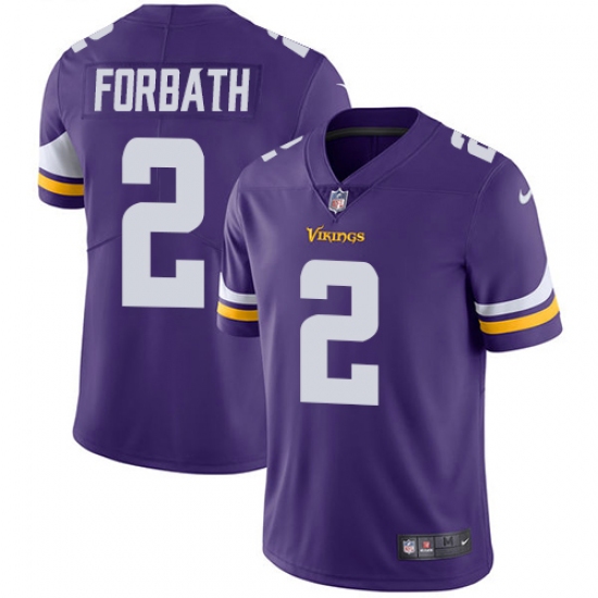Home>NFL>Minnesota Vikings>Kai Forbath>Men's Nike Minnesota Vikings #2 Kai Forbath Purple Team Color Vapor Untouchable Limited Player NFL Jersey