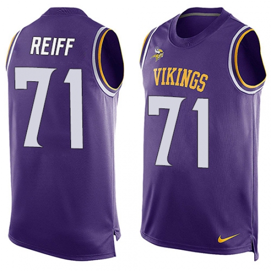 Home>NFL>Minnesota Vikings>Riley Reiff>Men's Nike Minnesota Vikings #71 Riley Reiff Limited Purple Player Name & Number Tank Top NFL Jersey