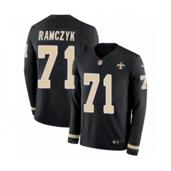 >Men's Nike New Orleans Saints #71 Ryan Ramczyk Limited Black Therma Long Sleeve NFL Jersey