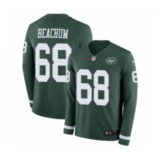 >Men's Nike New York Jets #68 Kelvin Beachum Limited Green Therma Long Sleeve NFL Jersey