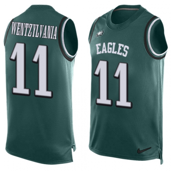 Men's Nike Philadelphia Eagles #11 Carson Wentz Limited Midnight Green Player Name & Number Tank Top Wentzylvania NFL Jersey