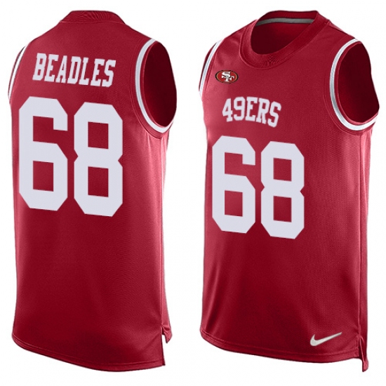 Men's Nike San Francisco 49ers #68 Zane Beadles Limited Red Player Name & Number Tank Top NFL Jersey