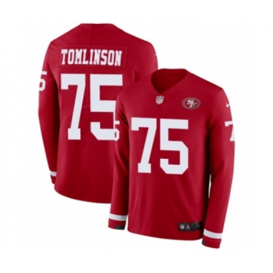 >Men's Nike San Francisco 49ers #75 Laken Tomlinson Limited Red Therma Long Sleeve NFL Jersey