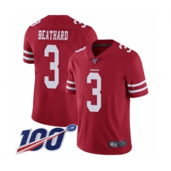 Men's San Francisco 49ers #3 C. J. Beathard Red Team Color Vapor Untouchable Limited Player 100th Season Football Jersey