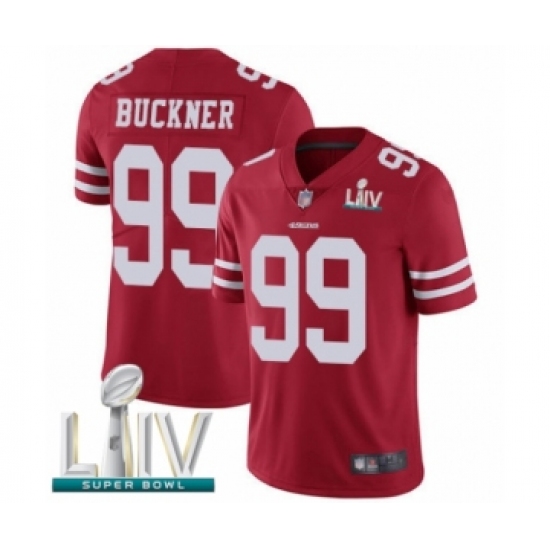 Men's San Francisco 49ers #99 DeForest Buckner Red Team Color Vapor Untouchable Limited Player Super Bowl LIV Bound Football Jersey