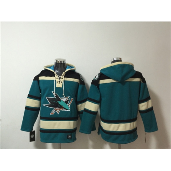 Men's San Jose Sharks Blank Teal Lace-Up Pullover Hoodie