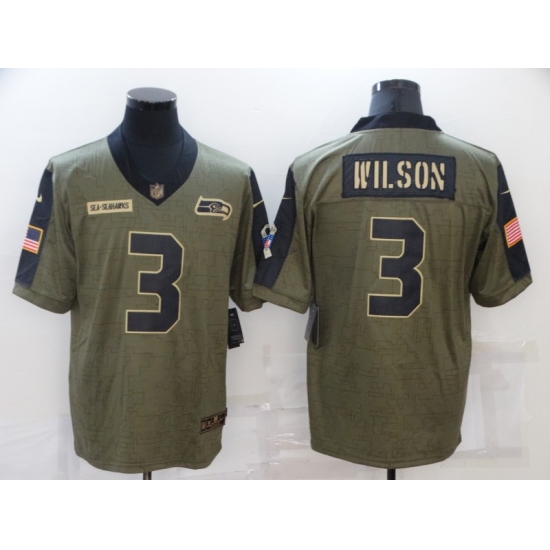 Men's Seattle Seahawks #3 Russell Wilson Nike Olive 2021 Salute To Service Limited Player Jersey