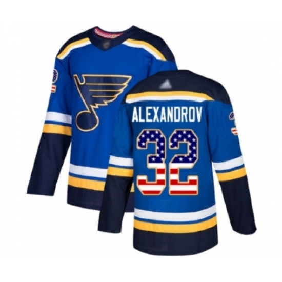 Men's St. Louis Blues #32 Nikita Alexandrov Authentic Blue USA Flag Fashion Hockey Jersey