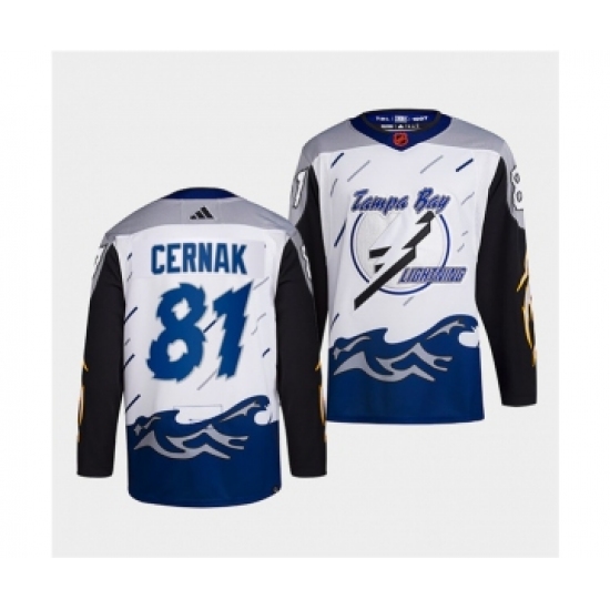 Men's Tampa Bay Lightning #81 Erik Cernak White 2022 Reverse Retro Stitched Jersey