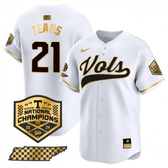 >Men's Tennessee Volunteers #21 Kavares Tears White Gold 2024 Champions Vapor Limited Stitched Jersey