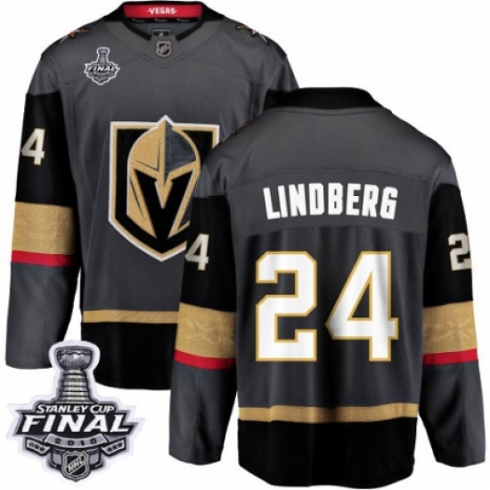Men's Vegas Golden Knights #24 Oscar Lindberg Authentic Black Home Fanatics Branded Breakaway 2018 Stanley Cup Final NHL Jersey