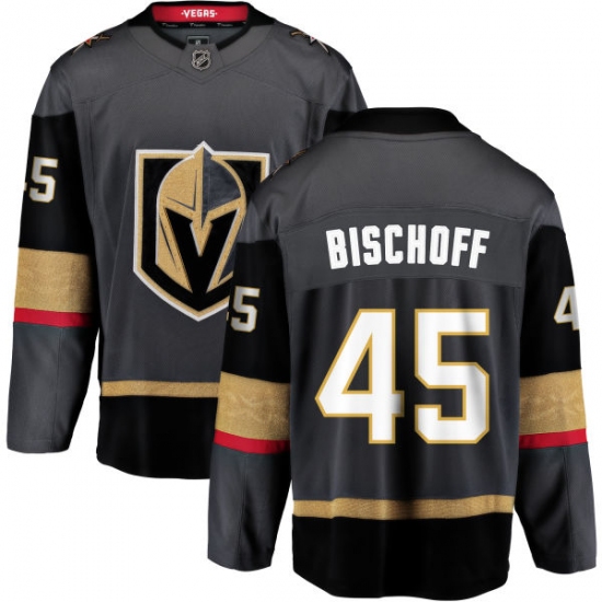 Home>NHL>Vegas Golden Knights>Jake Bischoff>Men's Vegas Golden Knights #45 Jake Bischoff Authentic Black Home Fanatics Branded Breakaway NHL Jersey