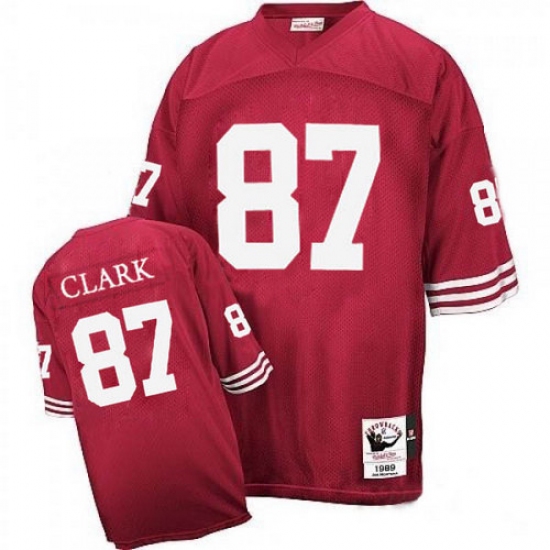 Feel like part of your favorite team by wearing this NFL® Mitchell and Ness San Francisco 49ers #87 Dwight Clark Authentic Red Jersey, made of thick, high-quality Pro-Brite fabric for a genuine gridiron look. The players number which 100% stitched is displayed in tackle twill on the chest, back and sleeves, along with the team name on the front. The players name which 100% stitched is displayed on a sewn-down nameplate at the back. 100% Pro-Brite nylon and 100% Pro-Brite polyester for body, 100% lycratalic spandex dazzle for Side Panels/Collar/Cuffs, NFL® Equipment patch sewn on the bottom of the front collar or fabric insert, NFL® Equipment jock tag with numeric sizing is applied to the lower left bottom of the jersey, Reebok® logo embroidered on each sleeve, Officially licensed