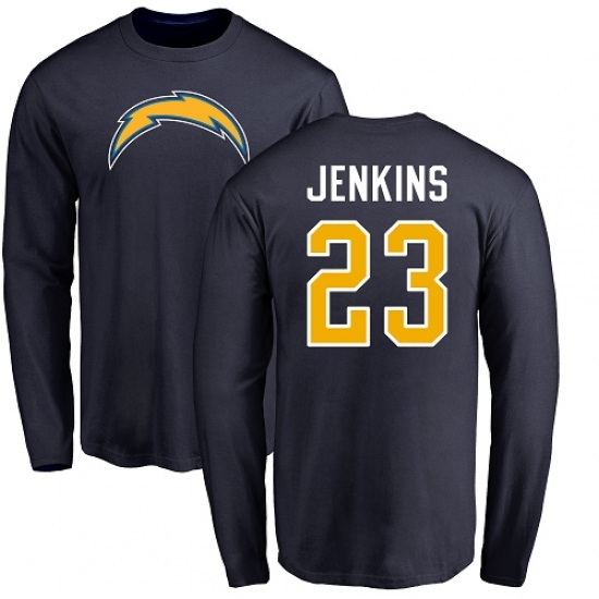 NFL Nike Los Angeles Chargers #23 Rayshawn Jenkins Navy Blue Name & Number Logo Long Sleeve T-Shirt