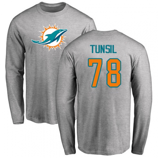 NFL Nike Miami Dolphins #78 Laremy Tunsil Ash Name & Number Logo Long Sleeve T-Shirt