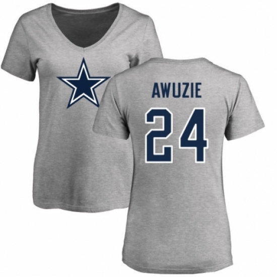 NFL Women's Nike Dallas Cowboys #24 Chidobe Awuzie Ash Name & Number Logo Slim Fit T-Shirt