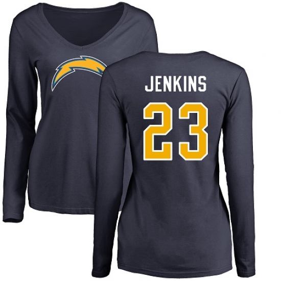 >NFL Women's Nike Los Angeles Chargers #23 Rayshawn Jenkins Navy Blue Name & Number Logo Long Sleeve T-Shirt