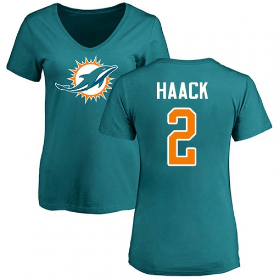 NFL Women's Nike Miami Dolphins #2 Matt Haack Aqua Green Name & Number Logo T-Shirt