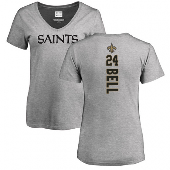 NFL Women's Nike New Orleans Saints #24 Vonn Bell Ash Backer V-Neck T-Shirt