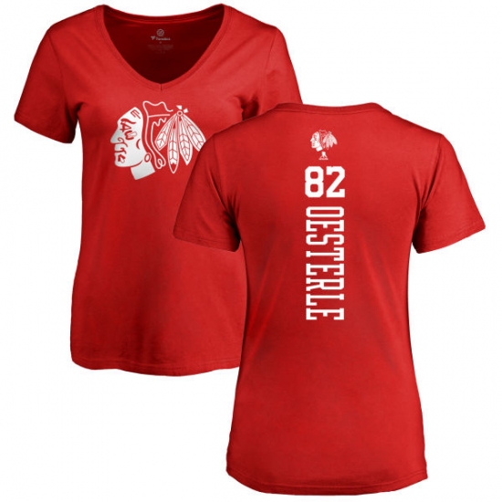 NHL Women's Adidas Chicago Blackhawks #82 Jordan Oesterle Red One Color Backer T-Shirt