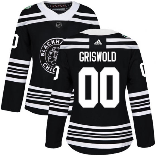 >Women's Adidas Chicago Blackhawks #00 Clark Griswold Authentic Black 2019 Winter Classic NHL Jersey