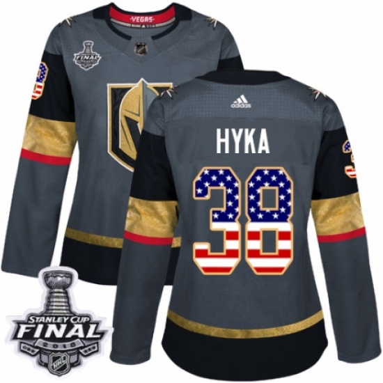 Women's Adidas Vegas Golden Knights #38 Tomas Hyka Authentic Gray USA Flag Fashion 2018 Stanley Cup Final NHL Jersey