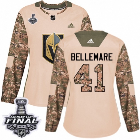Women's Adidas Vegas Golden Knights #41 Pierre-Edouard Bellemare Authentic Camo Veterans Day Practice 2018 Stanley Cup Final NHL Jersey