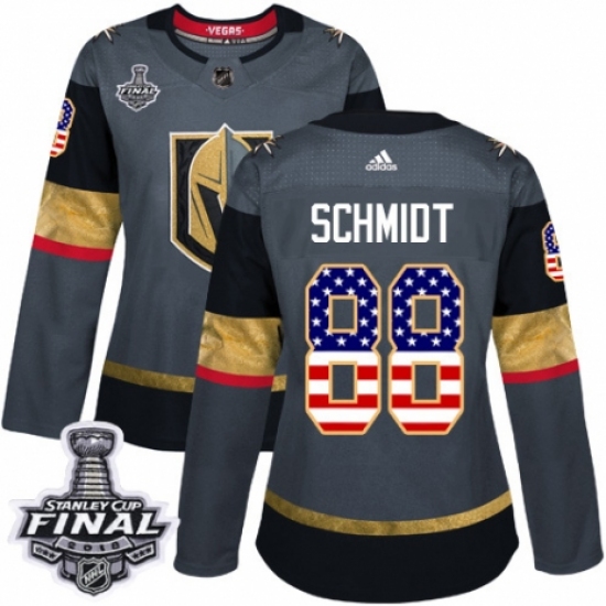 Women's Adidas Vegas Golden Knights #88 Nate Schmidt Authentic Gray USA Flag Fashion 2018 Stanley Cup Final NHL Jersey