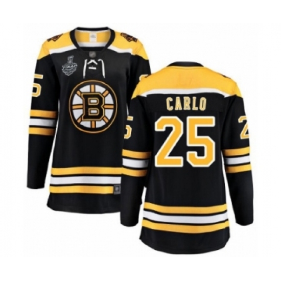 >Women's Boston Bruins #25 Brandon Carlo Authentic Black Home Fanatics Branded Breakaway 2019 Stanley Cup Final Bound Hockey Jersey