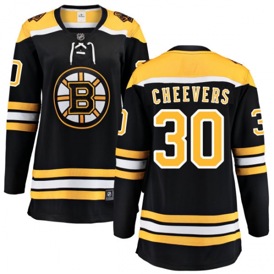 Home>NHL>Boston Bruins>Gerry Cheevers>Women's Boston Bruins #30 Gerry Cheevers Authentic Black Home Fanatics Branded Breakaway NHL Jersey