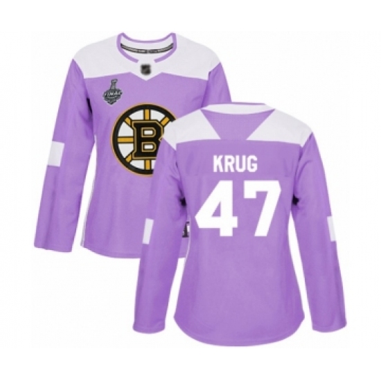 Women's Boston Bruins #47 Torey Krug Authentic Purple Fights Cancer Practice 2019 Stanley Cup Final Bound Hockey Jersey