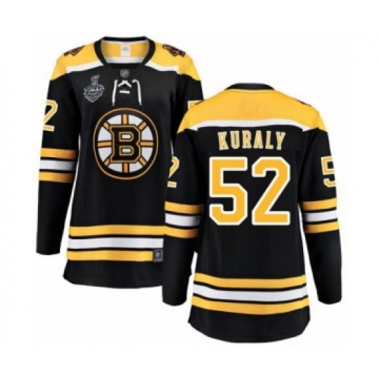 >Women's Boston Bruins #52 Sean Kuraly Authentic Black Home Fanatics Branded Breakaway 2019 Stanley Cup Final Bound Hockey Jersey
